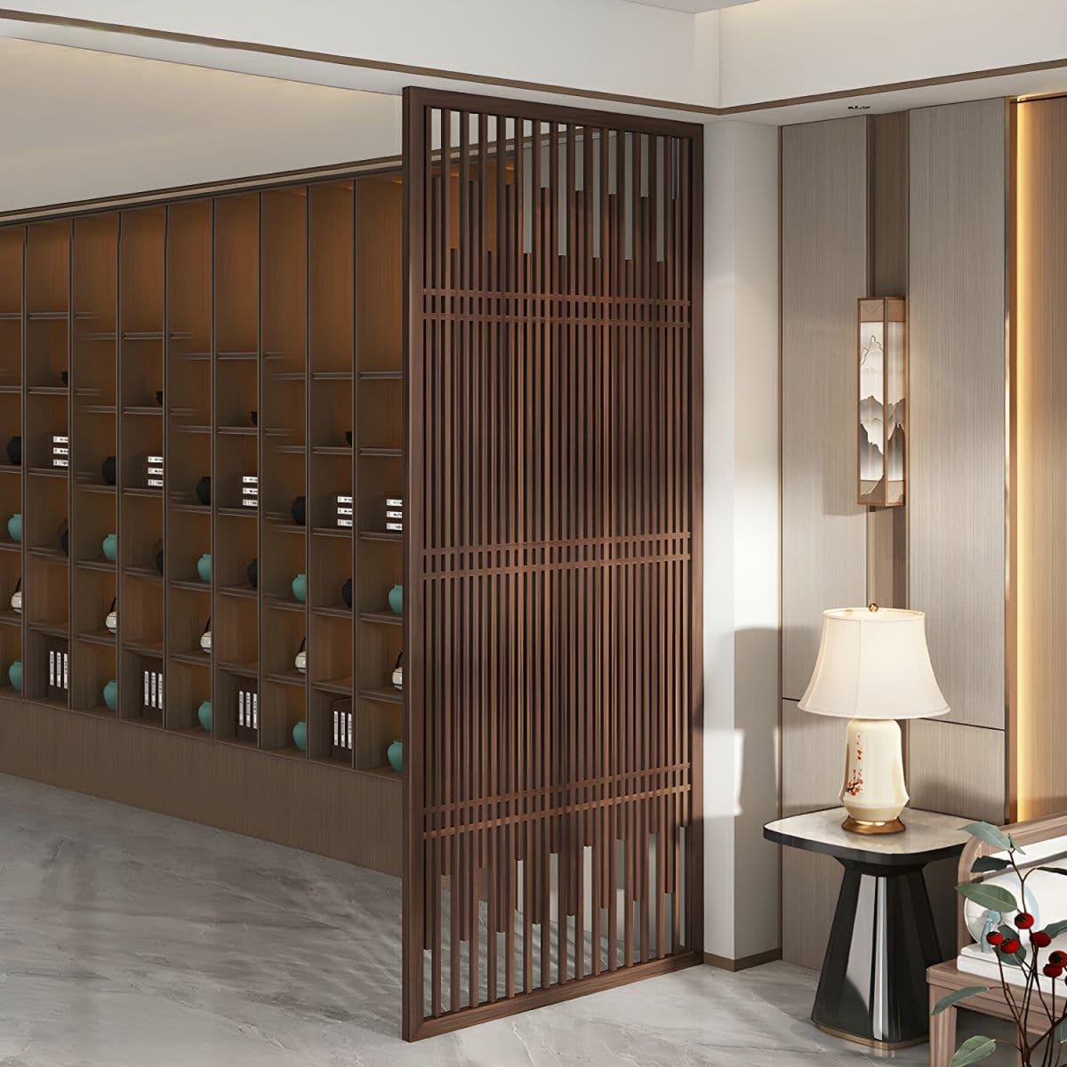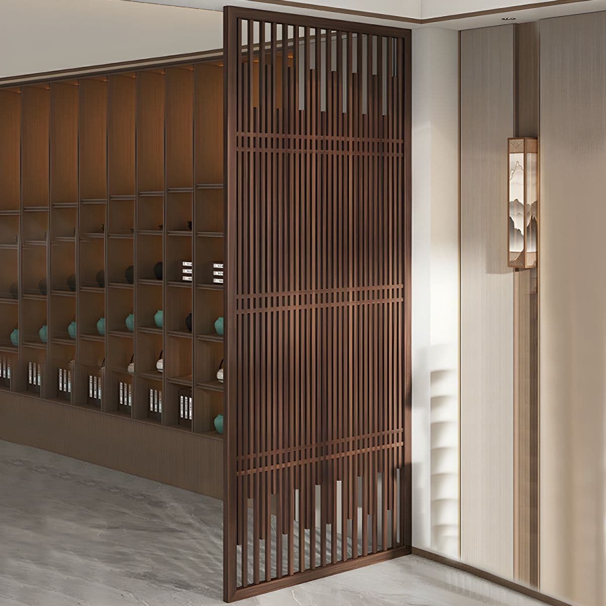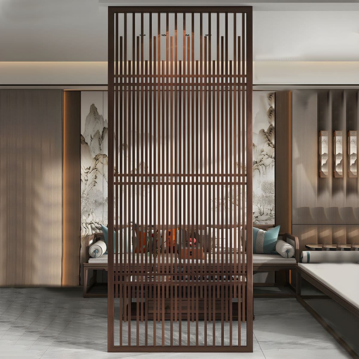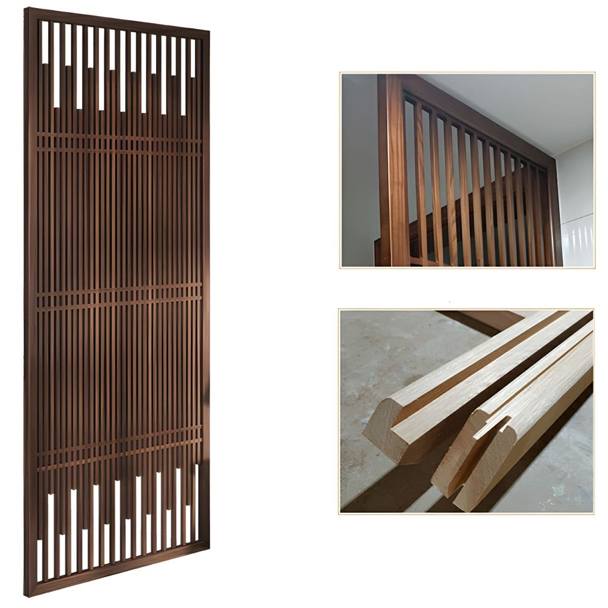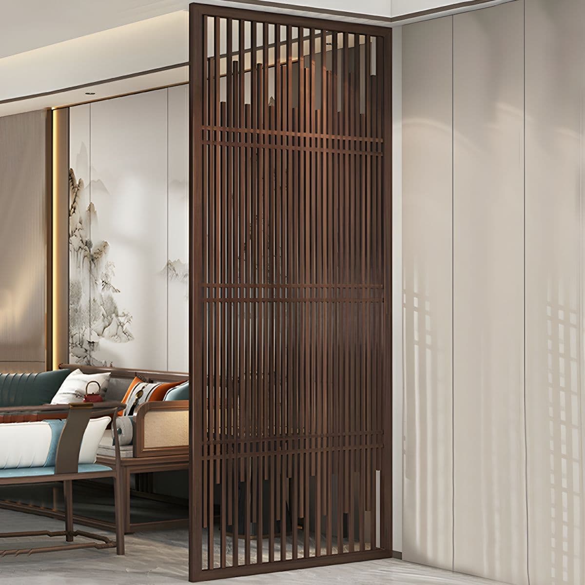 Traditional Brown Solid Wood Room Divider Screen in Single Panel - 47"L x 94"H