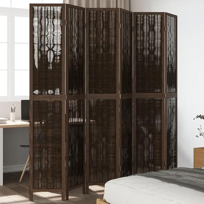 SKM Biombo Separador de 6 Paneles Madera Paulownia marrón Oscuro,Mobiliario,Divisores de ambientes,Marrón,358668