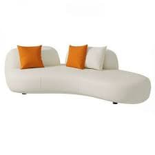 Contemporary Curved Leather Sofa with Scratch and Stain Resistant - White Leather 200 x 95 x 70 cm