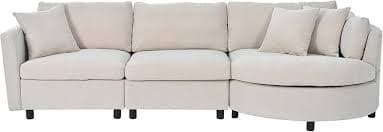 Amazon.com: Merax 3 Seater Upholstered Couch Living Room Sofa with Three Pillows and Curved Seat for Apartment, Beige : Home & Kitchen