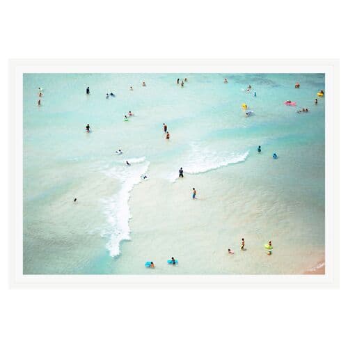 With crystal-clear waters and sunny skies, this image captures a perfect beach day. Taken by photographer Max Wanger, it is framed simply with a white mat and comes ready for hanging.