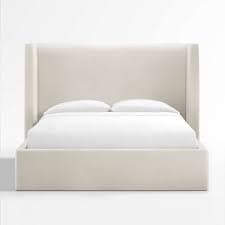 Arden Velvet Beige Upholstered King Bed with 52" Headboard + Reviews | Crate & Barrel