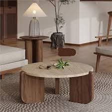 Amazon.com: YUANXIAOHU Coffe Tables Wabi-sabi Style Solid Wood Travertine Coffee Table Minimalist Small Tea Table Home Round Balcony Marble Coffee Table(X-Small) : Home & Kitchen