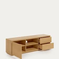 Mueble TV Abilen 1 puerta y 2 cajones de chapa de roble 150 x 44 cm FSC 100% | Kave Home Spain