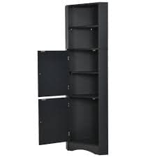 Tall Black Bathroom Corner Cabinet with Adjustable Shelves and Doors - MDF Board - FurniHQ