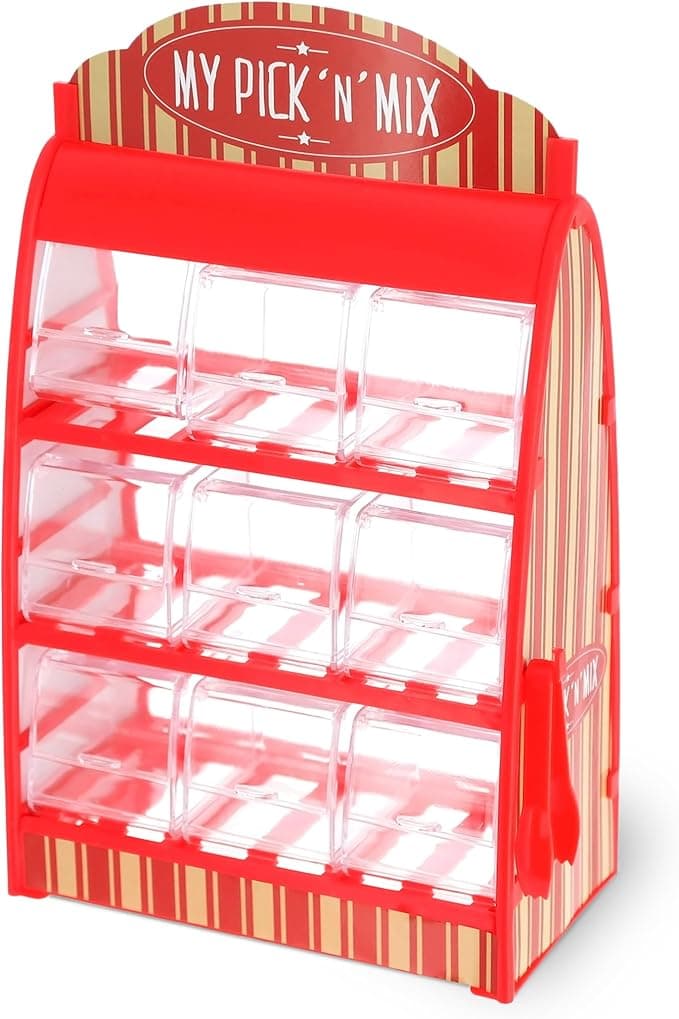 Dispensador de caramelos con 9 compartimentos, 30 x 18 cm, diseño retro con pinzas, dispensador de caramelos, bombones, gomitas de vino, jaleas, mostrador