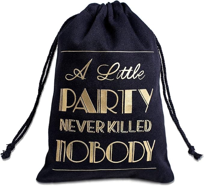 Letjolt Hangover Kit Bags Approx. 5 x 7 inch, set of 10. Fits in a small package. Easy to mail. MATERIAL: Cotton Canvas, natural material, washable, reusable, good quality cotton, not transparent. DESIGN: Classic color. Hangover kit bags with a drawstring closure, gold foil "A Little Party Never Killed Nobody". OCCASION: Bachelorette party, wedding party or any party, this bag is perfect for hangover kits, Perfect for packaging hangover medicine, chewing gum, band-aid or other supplies. These worked wonderfully to provide you and your friends with some much needed essentials and little bonuses during a weekend away.