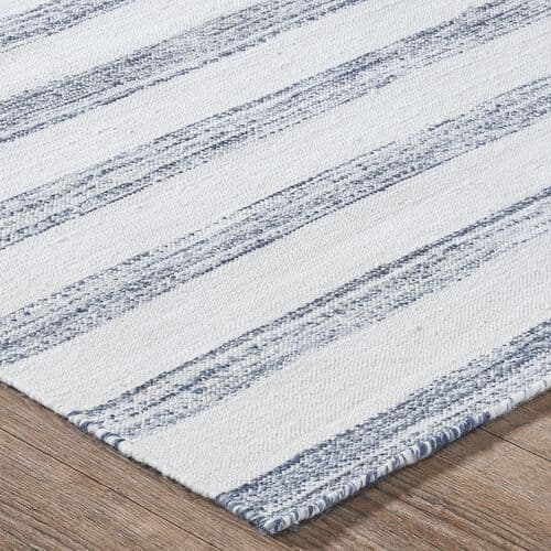 Subtle color changes give this striped rug an unexpected depth and artistry. Crafted from fade-resistant, durable, and easy-to-clean acrylic fibers, it will retain its beauty over time. A rug pad is recommended to avoid slipping.