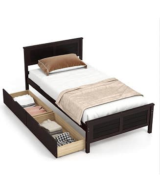 Gymax Twin Size Wooden Bed Frame with 2 Storage Drawers & Under-bed Storage Espresso