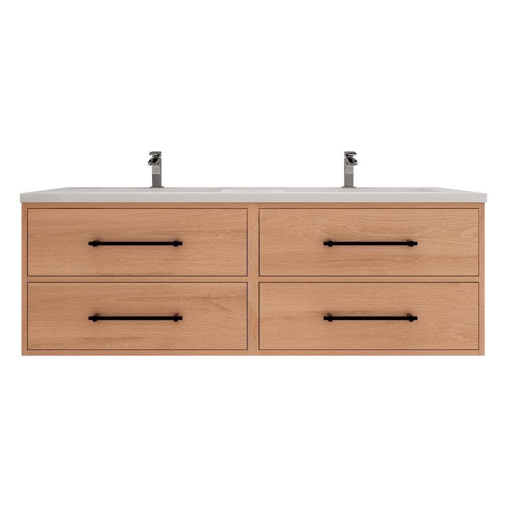 Victoria 47 in. W x 20 in. D x 22 in. H Double Sink Floating Bath Vanity in Red Oak with White Acrylic Top