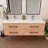 Give a perfect addition to your bath space by choosing this BV Better Vanity Victoria Double Sink Floating Bath Vanity in Red Oak with White Acrylic Top.