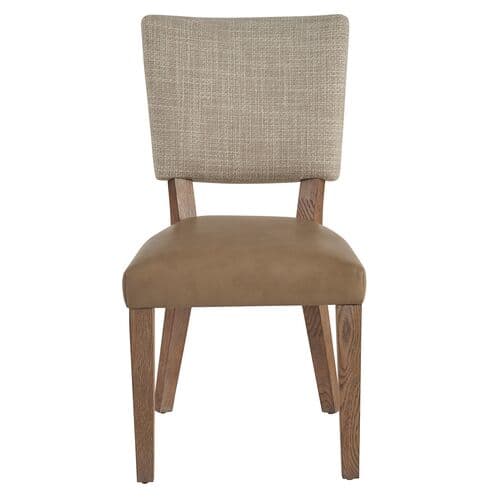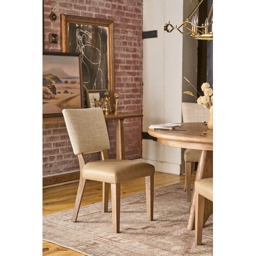 The Mesa Upholstered Side Chair is a stunning blend of classic and contemporary design. Its elegant silhouette, upholstered back, and leather seat create a luxurious and inviting aesthetic. The wooden legs add a touch of warmth and sophistication, making this chair a perfect addition to any dining room or living room.