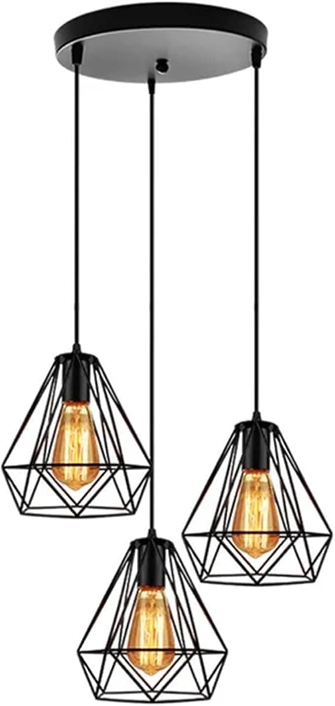 ZHANGJI Lámparas colgantes estilo loft retro lámparas colgantes jaula de hierro y diamante, luces colgantes de iluminación moderna, lámpara industrial vintage de cocina (redonda-negro)