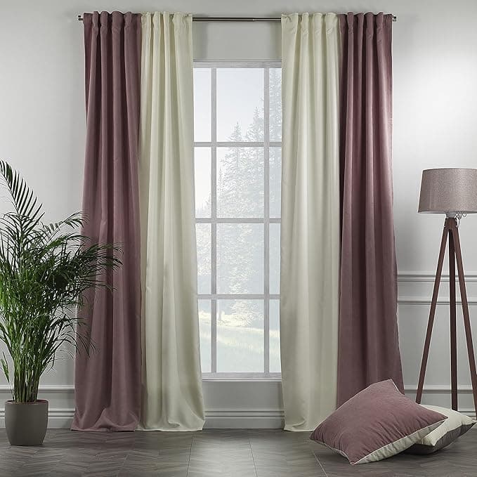 CASANEMA solid velvet look curtains home decorative set of 4 panels 2 colors combination velvet look designed to makes your home looking chic and classic, luxury, cozy and inviting. Solid velvet look curtains collection will create privacy and darkness in the room. Curtains for bedroom will stop the outside world from creeping into your private moments so you can enjoy the privacy with family. We have also available the same color cushion Covers.