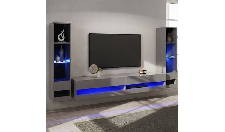 Gather all your essential AV equipment into a stylish wall-mounted storage unit with streamlined Galicia Range. The perfect companion piece for a flat screen TV, this simple twin-compartment furnishing piece exudes minimalist style. There's space on top for a few well-chosen accessories, while underneath, LED downlight accentuates the open slot design feature. Pairing with our Tall shelf unit giving that media wall unit effect. Equipped with built-in LED lights, the unit not only saves energy but also provides ambient lighting to accentuate displayed items, creating a cozy and inviting atmosphere.