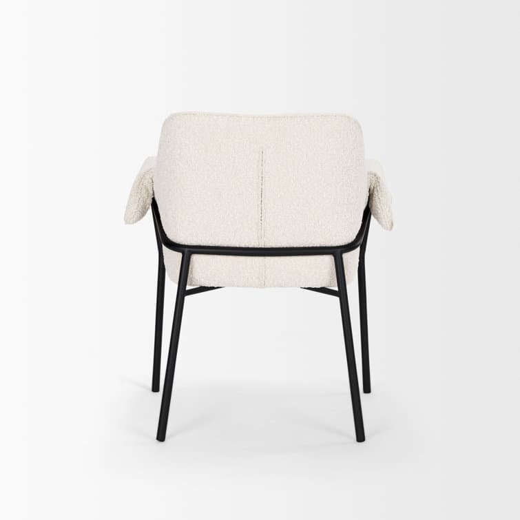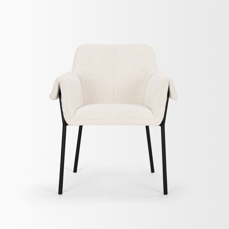 The Gloriette dining chair features a padded seat, back, and armrests that are upholstered in a durable, woven fabric. The sleek metal frame has been powdered coated in a timeless matte black that runs up the padded, rolled armrests. The casual cool design of this dining chair would make a stylish addition around the dining table.