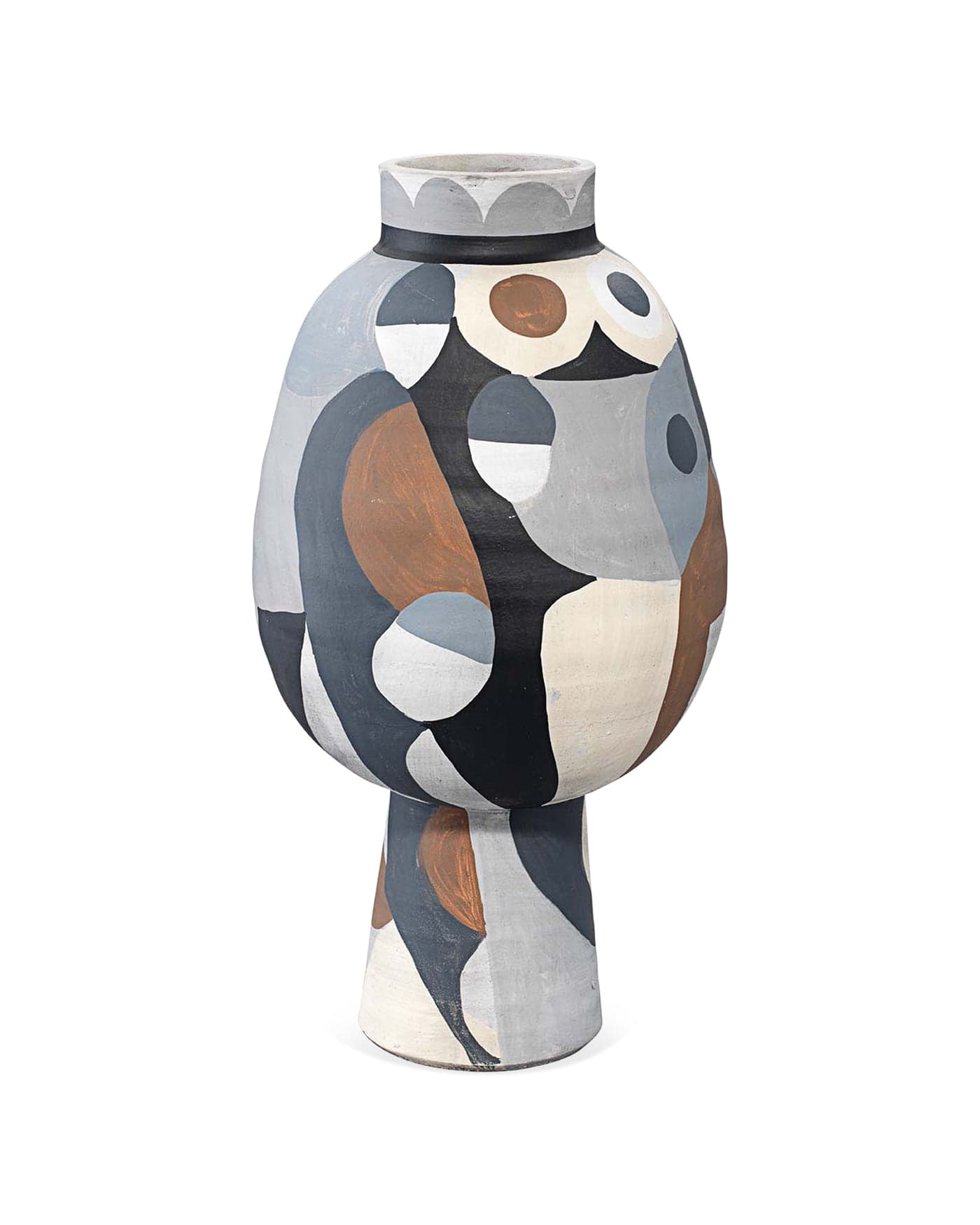 The Pablo Medium Vase is a hand-painted decorative vase to add a modern touch of interest to your home. Its matte cubist design was inspired by the Impressionist painter Pablo Picasso and features hand-done brush strokes and imperfect lines to create an artisanal look. The neutral color-blocked palette allows this modern piece to blend into almost any environment.