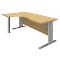 Tablero de trabajo redondeado y antirreflejos para mayor comodidad. Embellecedores móviles para facilitar el paso de los cables por las patas de la mesa. El ala se apoya en una pata de tubo metálica.
