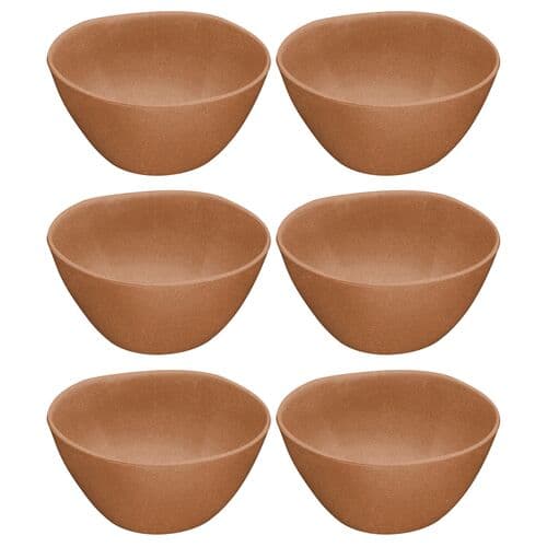 The six bowls in this set are crafted from plant-based material bound with melamine, making them shatterproof and resistant to scratches and chips, ideal for outdoor dining or use with children. They are also dishwasher safe, providing convenience and ease of cleaning.