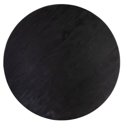 With its substantial, shapely legs and slim, rounded tabletop, this coffee table combines light black-finished reclaimed wood for a worldly, natural aesthetic and handcrafted feel.
