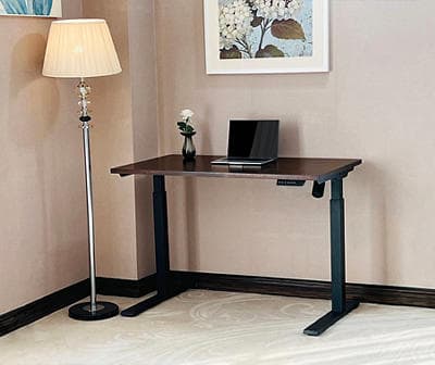Say goodbye to back and neck pain and hello to better posture and increased productivity with this standing desk from Broyhill. Outfitted with a single motor, this two stage height adjustable desk has four preset buttons to customize your desired heights, while the smooth motor lift system and sturdy steel frame can support up to 176 lbs. With a lovely acacia wood veneer tabletop, a brilliant digital LED display and double steel tubing, this standing desk is a must-have for any home office, computer room and more.
