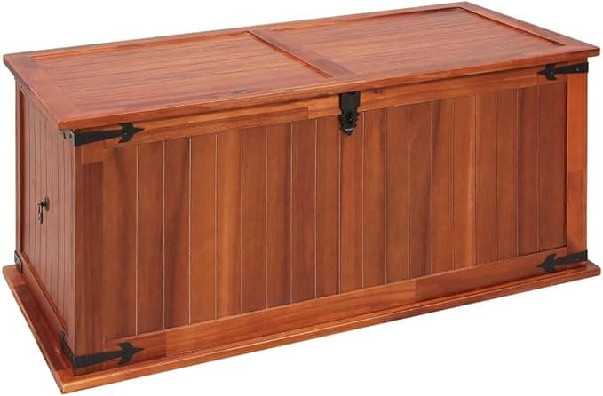 Este baúl único de madera maciza de acacia y MDF complementará tu hogar. El baúl de almacenamiento ofrece suficiente espacio de almacenamiento para ropa, revistas, libros, juguetes, herramientas y otros accesorios. Dispone de un pestillo frontal y dos asas laterales. Gracias a su parte superior resistente y plana, este baúl también se puede utilizar como mesa de café, mesa de salón, mesa lateral, mesa auxiliar, etc. La caja de cojín está hecha a mano de madera maciza. La excelente artesanía y el hermoso grano de madera hacen de cada mueble un ejemplar único.