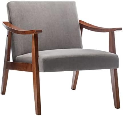 Container Furniture Direct Accent Chair with Velvet Upholstery and Solid Wood Frame, Classic Mid-Century Modern Living Room Furniture for Extra Seating, Grey