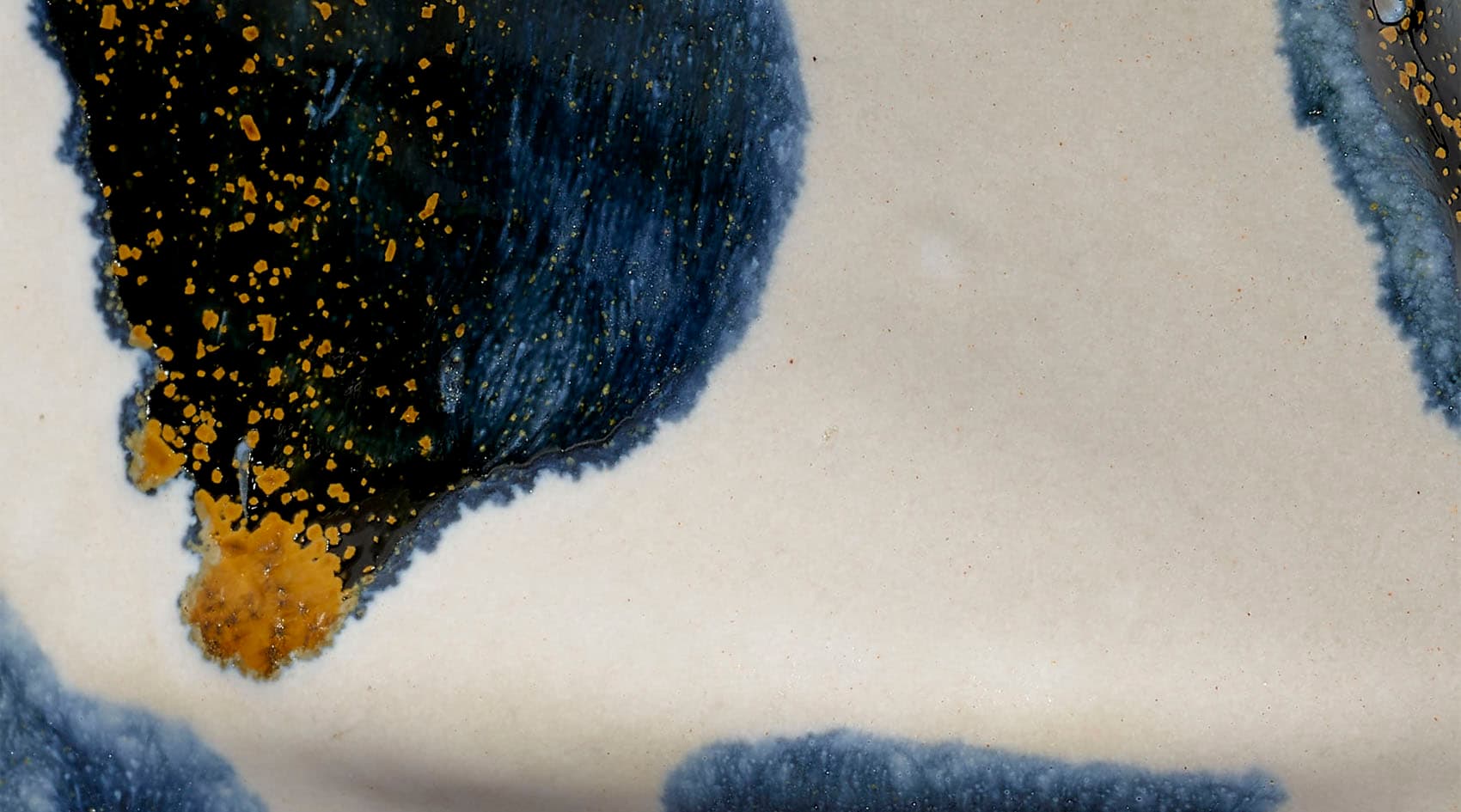 Artfully handcrafted from fine ceramic, these bright and cheerful vessels showcase bold splashes of blue reactive glaze. To enhance their organic shapes, the ruffled openings are rimmed in the same hue. The glazing technique reacts uniquely on each piece, ensuring that no two are completely identical.