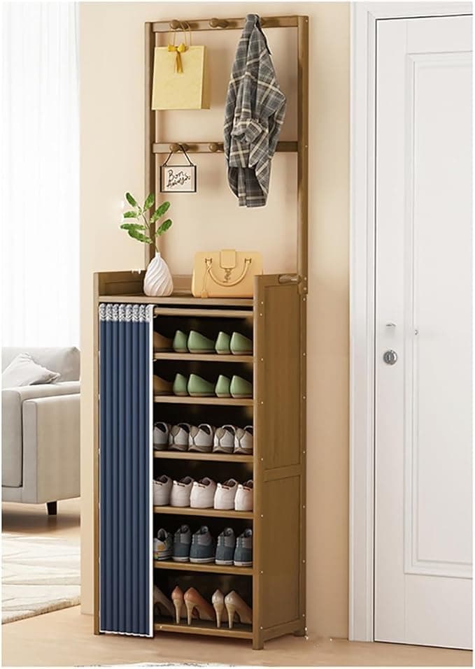DKRAHRJJ Perchero Y Zapatero de 7 Niveles, Perchero de Entrada con 6/8/10 Ganchos, Organizador de Zapatos con Cortina para Sala de Estar, Dormitorio Y Oficina/Blue Fabric/80Cm