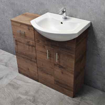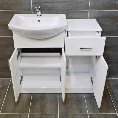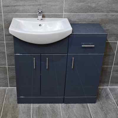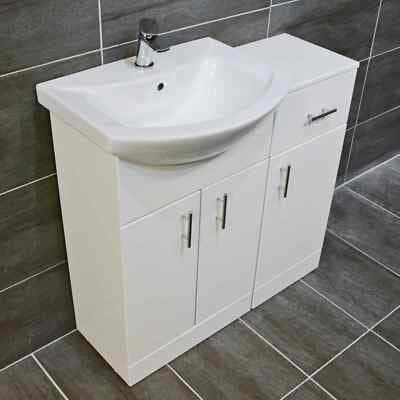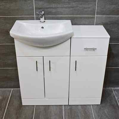 As an optional extra. The WC unit and Vanity unit can be either fit butted up together, or separate (as pictured). 550mm St Moritz Vanity unit with Basin (3 Colours). 350mm Drawerline Unit Bathroom Storage (3 Colours).
