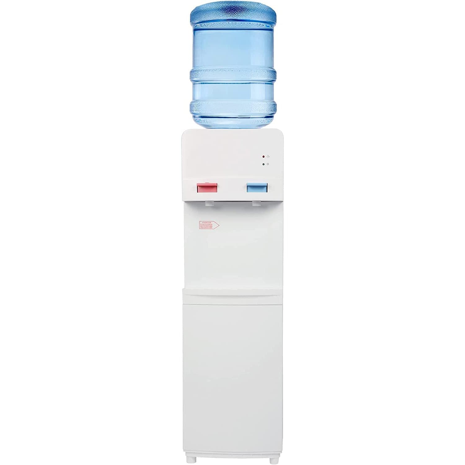 The Water Dispenser Adopt advanced compressor refrigeration technology, this freestanding Hot and Cold Water Dispenser provides you with safe and efficient cold water and hot water for making tea, coffee, cold drinks, soups and more. The freestanding water cooler provides quick heating and cooling with low noise and low power consumption. Features: Top Loading & Stylish Design: The bottle is loaded from the top of this water cooler dispenser, allowing you to easily confirm if the dispenser is running out of water. The ABS plastic body is elegant and won’t look bulky, making it fit any space in your home, office, gym, etc. You will love the convenience of this water cooler. Note: Before plugged in, make sure the water bottle is settled on the machine. Large Capacity & No Noise: The dispenser is able to hold 5 gallon bottles of water, simply meeting family or office drinking needs. You don't need to constantly purchase water, which will bring much convenience. In addition, it runs with nearly no noise, so it will not disturb your sleeping, working or studying. Safe & Easy to Use: This water dispenser has a child safety lock on hot water tap, which can effectively avoid the accidental burns of kids. ETL listed, so you can choose it with confidence. And the control panel with indicator lights offers a clear viewing for water temperature option, really easy to use. Two Temps & Energy Saving: This water cooler features separate hot and cold switches. It can quickly prepare hot water in a few minutes to help you keep warm during chilly days or meet the demands of instant beverages and meals. It can also flow out hot and cold water at the same time. Hot Water Temp: 190-203°F. Cold Water Temp: 40-50°F. Stop heating and cooling switches function is helpful for energy saving. Easy Cleanup: The water barrel seat and the drip tray are both detachable, which makes this top loading water dispenser convenient to clean. Regular cleaning will make you drink clean water every day and it is good for your health.