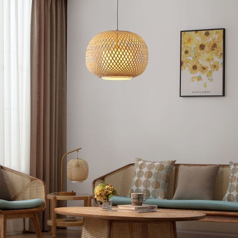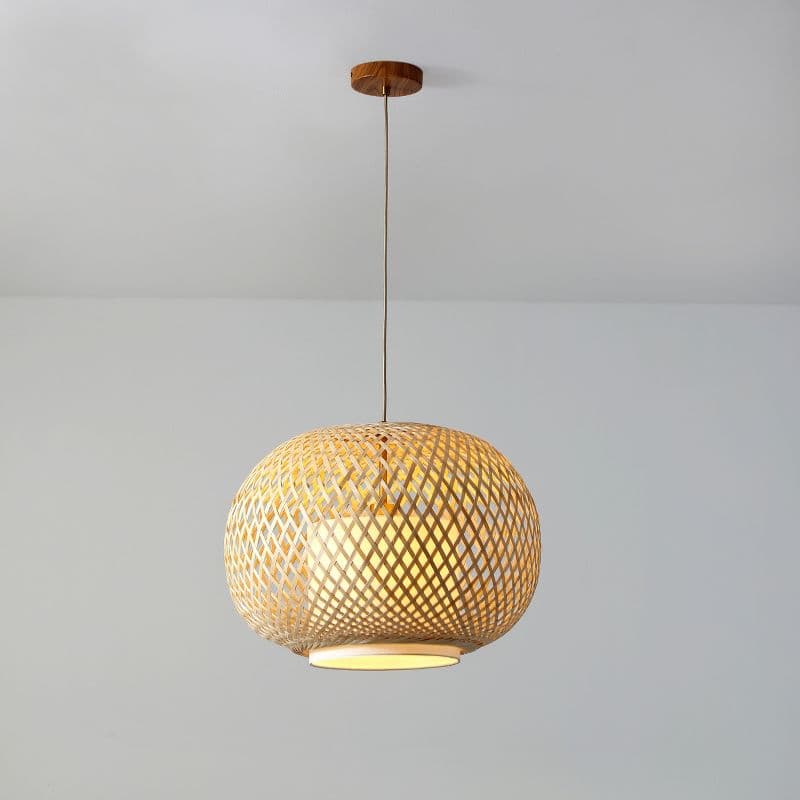 Create a focal point with the FOS Large Pendant by VidaLite, a harmonious blend of organic texture and minimalist design. Its elegant silhouette is defined by a handwoven bamboo shade, suspended by a walnut-finished canopy, exuding a serene, natural ambience perfect for contemporary or bohemian-inspired spaces.