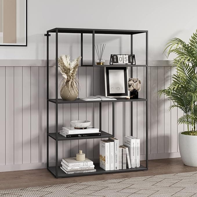 [en.casa] Librería Sieve de 4 Niveles Estantería Independiente con 2 Estantes Pequeños y 2 Grandes Biblioteca Oficina Sala Acero 126 x 85 x 35 cm Negro Mate
