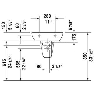 Duravit 23105500302 D-Code 21-5/8 X 16-7/8 Inch Wall Mounted Bathroom Sink With Overflow, 3 Holes