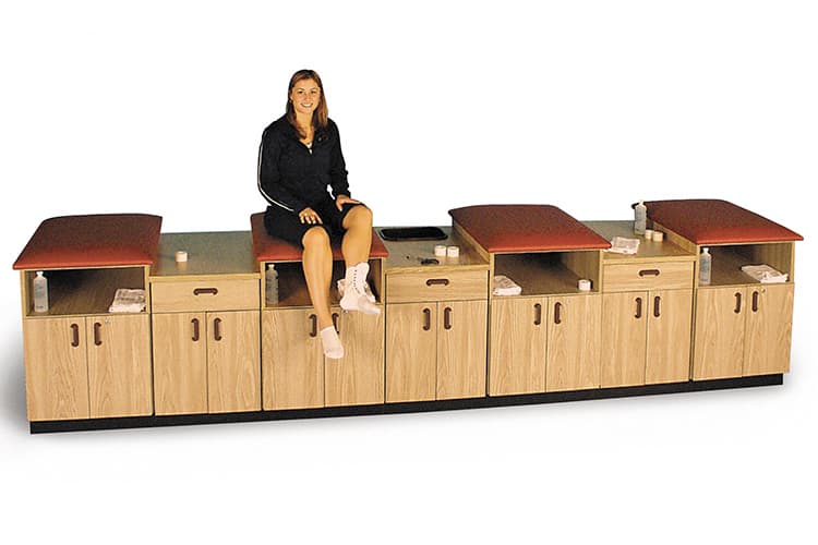 Durable, comfortable, and supportive, this taping station is an ideal addition to physical therapy offices or university clinics. It's plushly upholstered for patient safety, too.