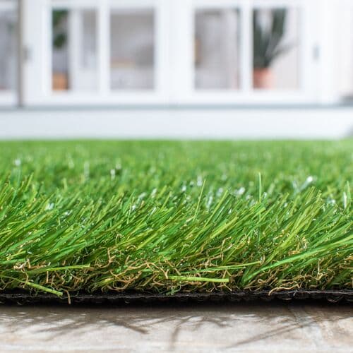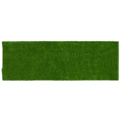 Maintaining this faux-grass rug is much simpler than tending to a lawn: just hose it down for cleaning, and it requires no mowing. With a pile height exceeding 1.5 inches, it offers a soft surface to sit on or walk over. The latex backing enhances its durability.