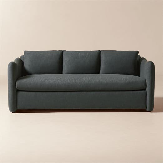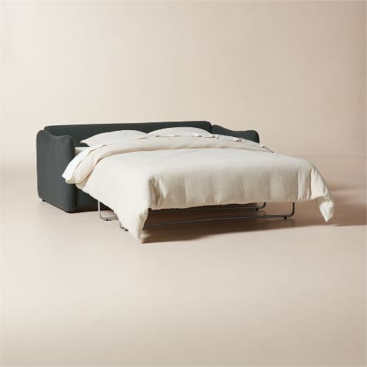 A modern sleeper sofa with charcoal grey performance fabric. FSC® Certified.
