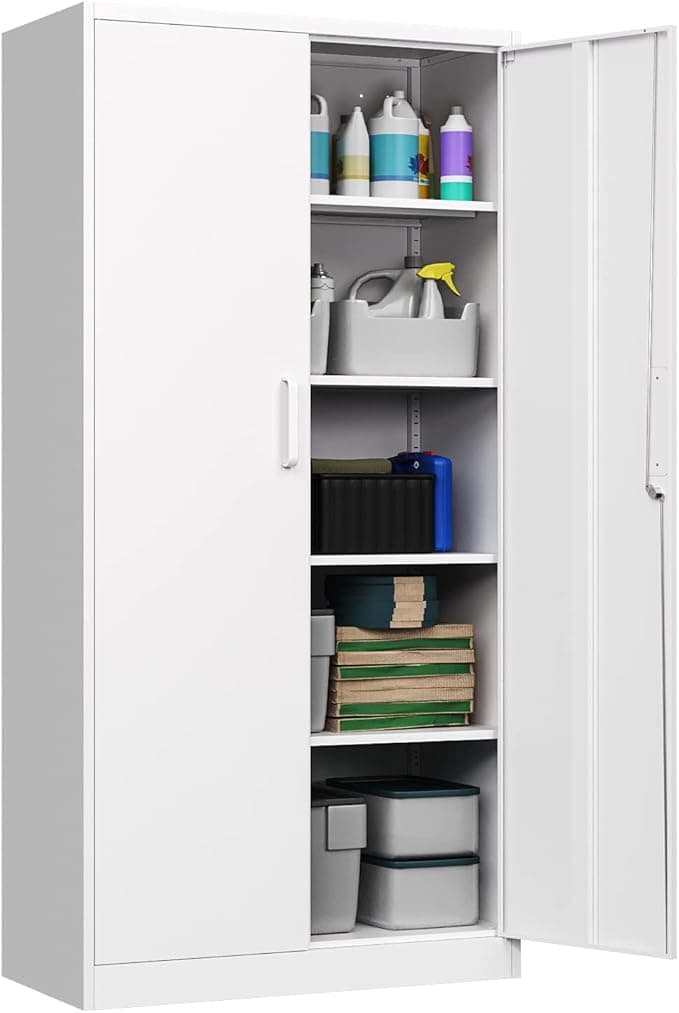 Buy PEUKC Metal Garage Storage Cabinet, 71-inch Tall Storage Cabinet with Adjustable Shelves & Locking Doors, Tool Cabinets for Garage,Office,Home,School,Gym Storage (White): Tool Chests & Cabinets - Amazon.com ✓ FREE DELIVERY possible on eligible purchases