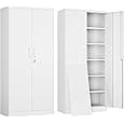 PEUKC Metal Garage Storage Cabinet, 71-inch Tall Storage Cabinet with Adjustable Shelves & Locking Doors, Tool Cabinets for Garage,Office,Home,School,Gym Storage (White)
