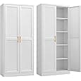 KINDLY REMINDER: Metal Kitchen Cabinet, Non-Wood. FASHIONAL & MULTIFUNCTIONAL: This kitchen pantry cabinet with the simple white lines that make the cabinet more elegant & beautiful and complement each other with various decoration styles. Whether your home is decorated in a modern or retro style, this food pantry cabinet will seamlessly match with your other home furniture for a sophisticated look and reflects your extraordinary taste! LARGE CAPACITY & FLEXIBLE STORAGE: The size of this storage cabinet with doors and shelves is 71"H x 32"W x 16"D, use multi-level shelf design with 5-level compartment, 4 shelves can be adjusted or removed to create different compartment to meet your different needs. Loading capacity up to 140LBS per shelf. Ideal for storing food, tools, sundries, utensils, books, cookware and various kitchen items for a clean and tidy kitchen. PREMIUM & ENVIRONMENTALLY FRIENDLY MATERIAL: POLUP metal storage cabinet adopts thickened cold-rolled steel plate and electrostatic powder spraying technology, not only more sturdy and durable, but also anti-rust, corrosion-resistant, easy to clean, odorless. Beside, we use the environmentally friendly paint to ensure safety for using the kitchen cabinet without any irritating odors and easier maintenance, extended lifespan. UNIQUE DESIGN & MULTI-PURPOSE: Crafted from premium 100% steel, this pantry storage cabinet is equipped with 2 reserved holes on its back so that secures it firmly to the wall conveniently, eliminating any tipping concerns while the magnetic door design ensures convenient opening and closing. Very suitable for various home and office spaces, such as kitchens, restaurants, bedrooms, study rooms, living rooms, entrances, kid's rooms, laundry room, utility room or garage etc. EASY TO ASSEMBLE & CLEAR INSTRUCTION: The freestanding kitchen cabinet storage comes with a detailed installation manual and video guide, ensuring a hassle-free assembly experience. All parts are neatly arranged and labeled to facilitate quick assembly. If you need any assistance in using or installation for this cabinet, please contact with us without any hesitation, we promise to help you and make you satisfied.