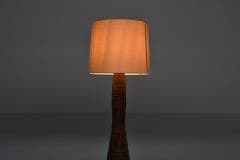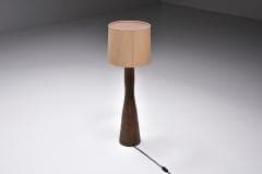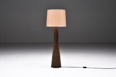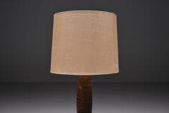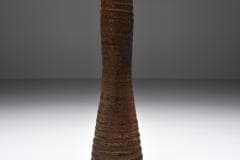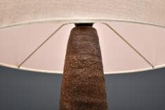 This rustic floor lamp has a ceramic base and a round fabric lamp cap. An ideal piece to lighten up an interior that is in need of a warm Mid-Century accent. The ceramic base is remarkably crafted by an Italian artist in the 1940s.