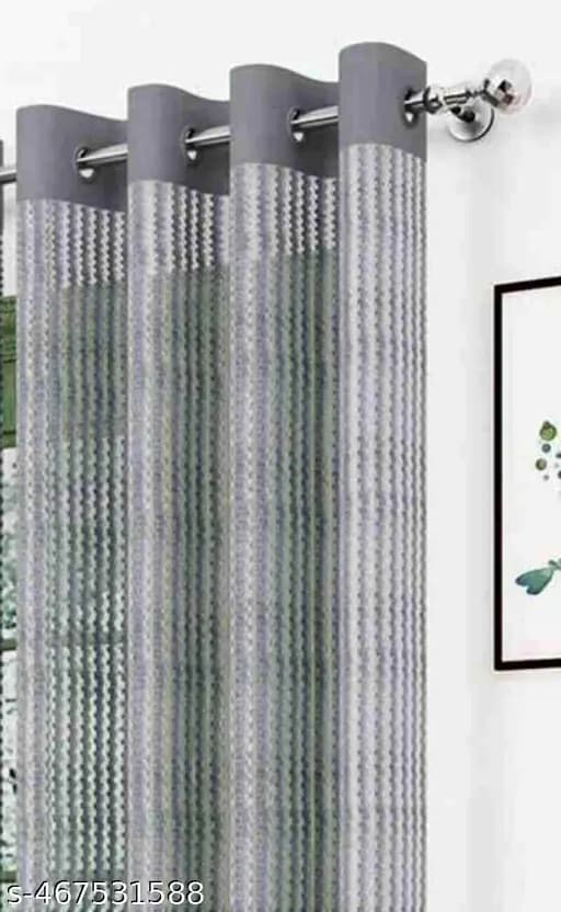 Name: Curtains combo pack of 2 with heavy tape for living room,drawing room Material: Tissue Print or Pattern Type: Striped Length: Door Net Quantity (N): 2 Sizes:5 Feet (Length Size: 5 ft, Width Size: 4 ft) 7 Feet (Length Size: 7 ft, Width Size: 4 ft) 9 Feet (Length Size: 9 ft, Width Size: 4 ft)