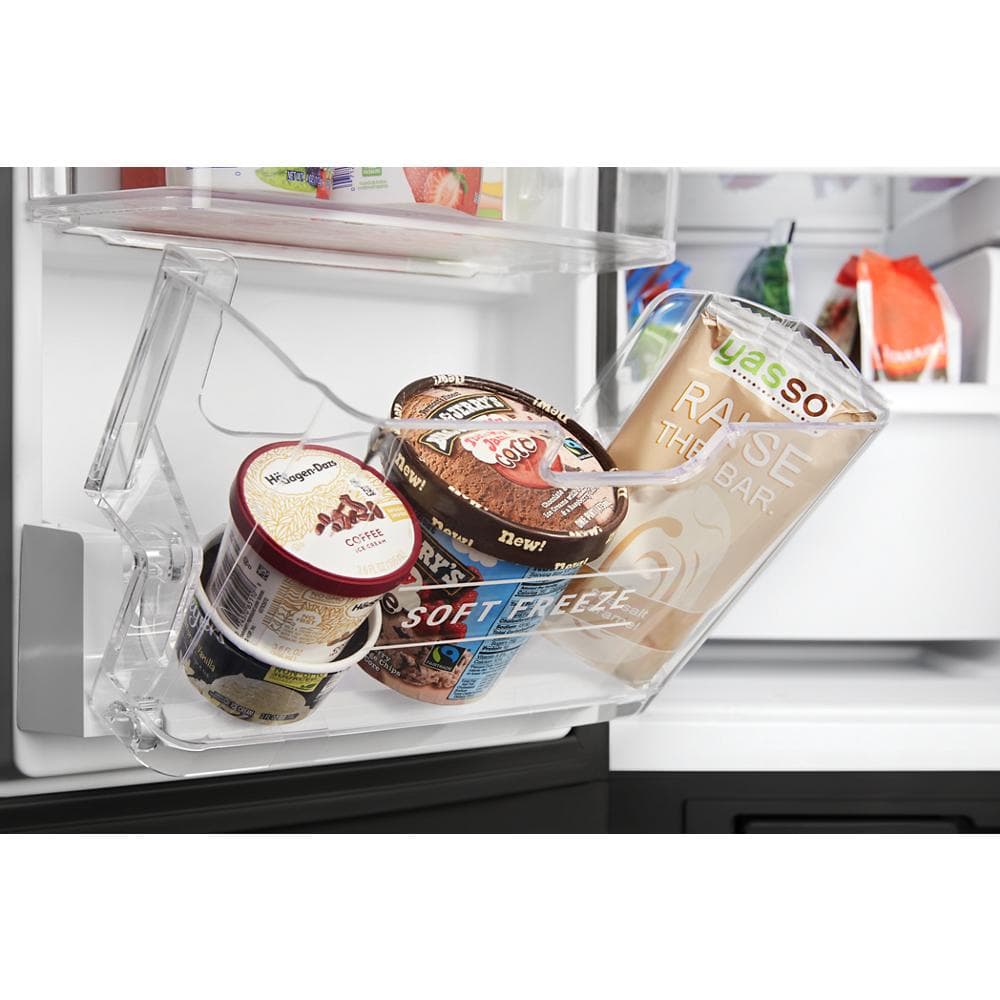 This side-by-side refrigerator is built tough and easy-to-clean with its fingerprint resistant stainless steel finish. Built with plenty of storage options, including a specially designed soft freeze bin that puts you in control of the way foods freeze. Put in a pint of ice cream and it's soft enough to scoop. Frozen pizza storage stores two frozen pizza boxes upright and out of the way, so quick meals are an easy grab. The distinct and durable Signature Maytag® metal shelf adds a bold look to the inside. With an exterior ice and water dispenser for easy access, plus a 10-year limited parts warranty on the compressor, this side-by-side fridge will keep it all cool for years and years.