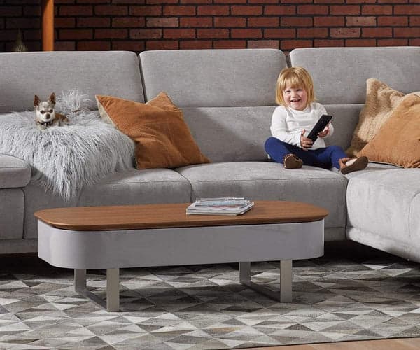 The Baptisia Lift Top Storage Coffee Table provides an abundance of style and storage for your modern living space. Its clever mix of elements adds a touch of warmth as well as sleek style to your room decor with the smooth wood grain and glossy grey finishes. The entire tabletop lifts to reveal ample storage area below, perfect for hiding away remotes, coasters, even game supplies. A perfect contrast in curved and straight lines, this piece stands securely on the two stainless steel legs featuring distinctive right angles.