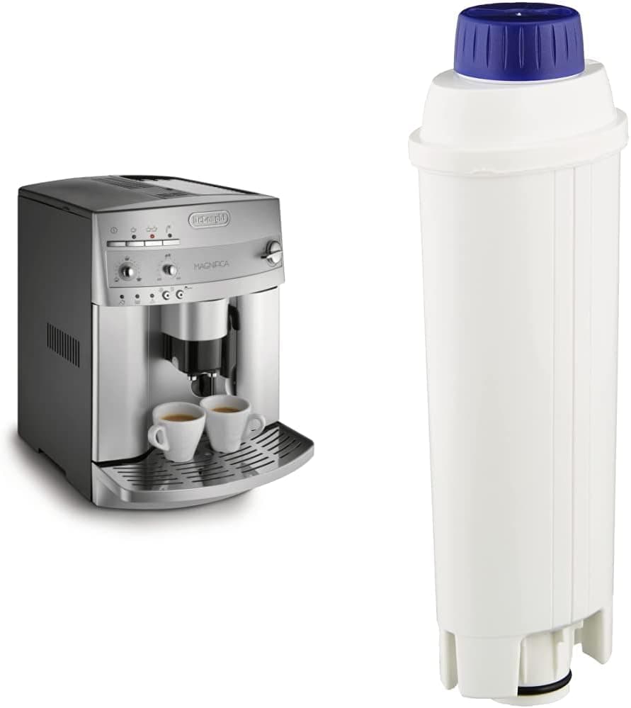 De'Longhi ESAM3300 Magnifica Super Automatic Espresso & Coffee Machine, Silver & De'Longhi 5513292811 Water Filter, Pack of 1, White