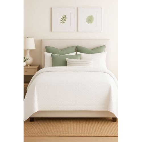 Crafted in cotton piqué matelassé, this coverlet features an appealing honeycomb pattern. It enhances the bed with tonal texture, offering a look that is both relaxed and elegant.