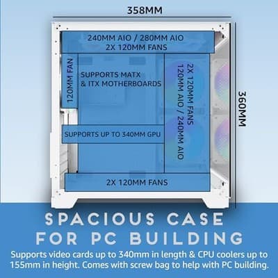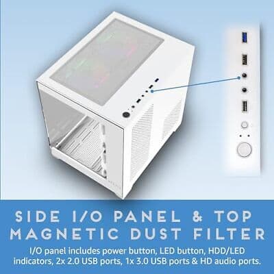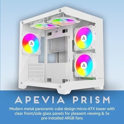 Prism-WH Prism Micro-ATX Gaming PC Cube Case w/ 5X 120mm ARGB Fans, 366 RGB