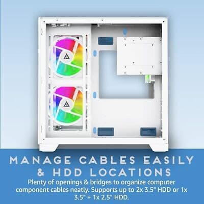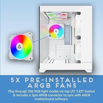 RGB fans has 366 RGB lighting modes via RGB light switch button on top of case (Press down on LED button for 5 seconds to switch to motherboard ARGB sync mode). Prism-WH Prism Micro-ATX Gaming PC Cube Case w/ 5X 120mm ARGB Fans, 366 RGB Modes, Dual Tempered Glass Panels, 240mm Radiator Support, 1X USB3.0, 2X USB 2.0, HD Audio Port, White.