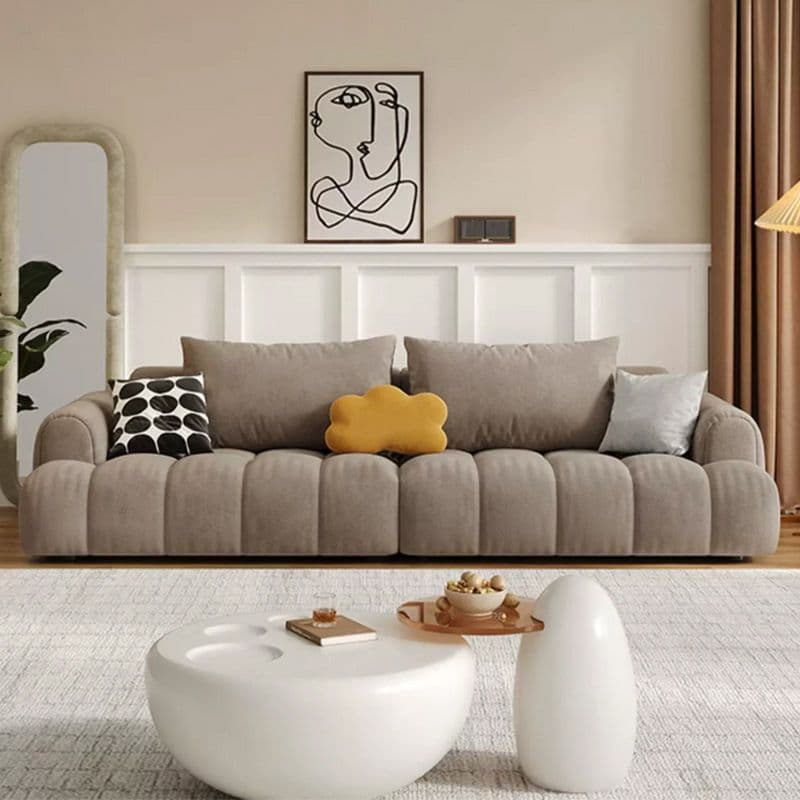 Mocha Sofa with Concealed Support & 3 Pillows Living Room, Brown, Anti Cat Scratch Fabric, 98"L x 39"W x 30"H