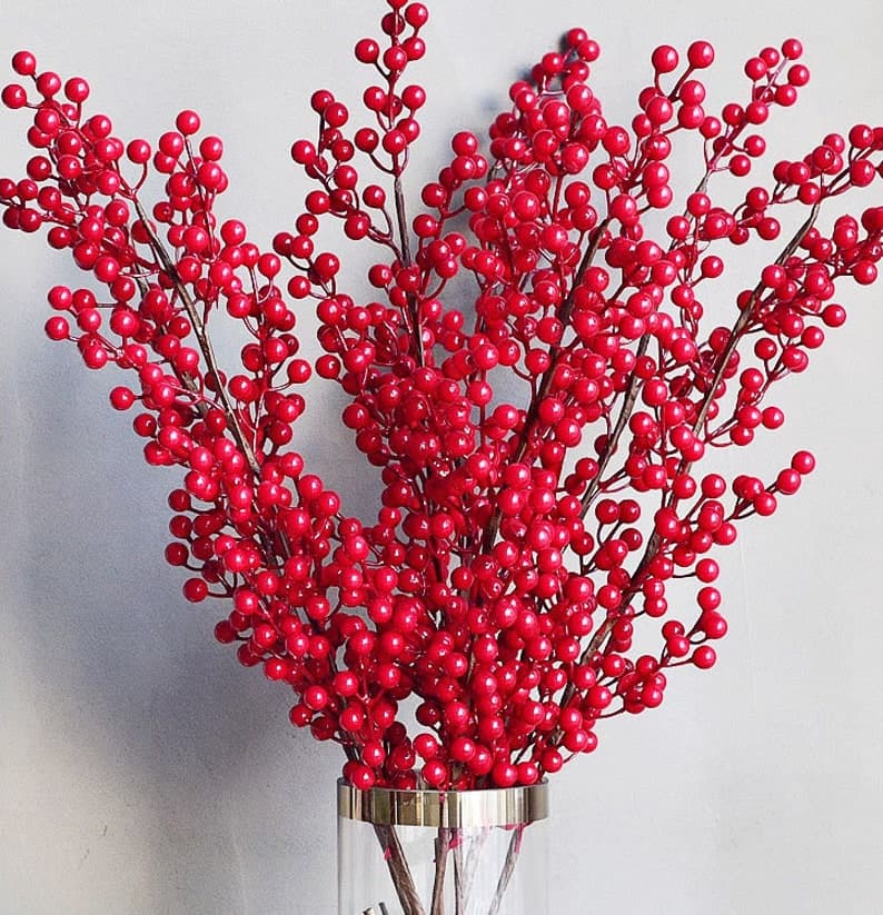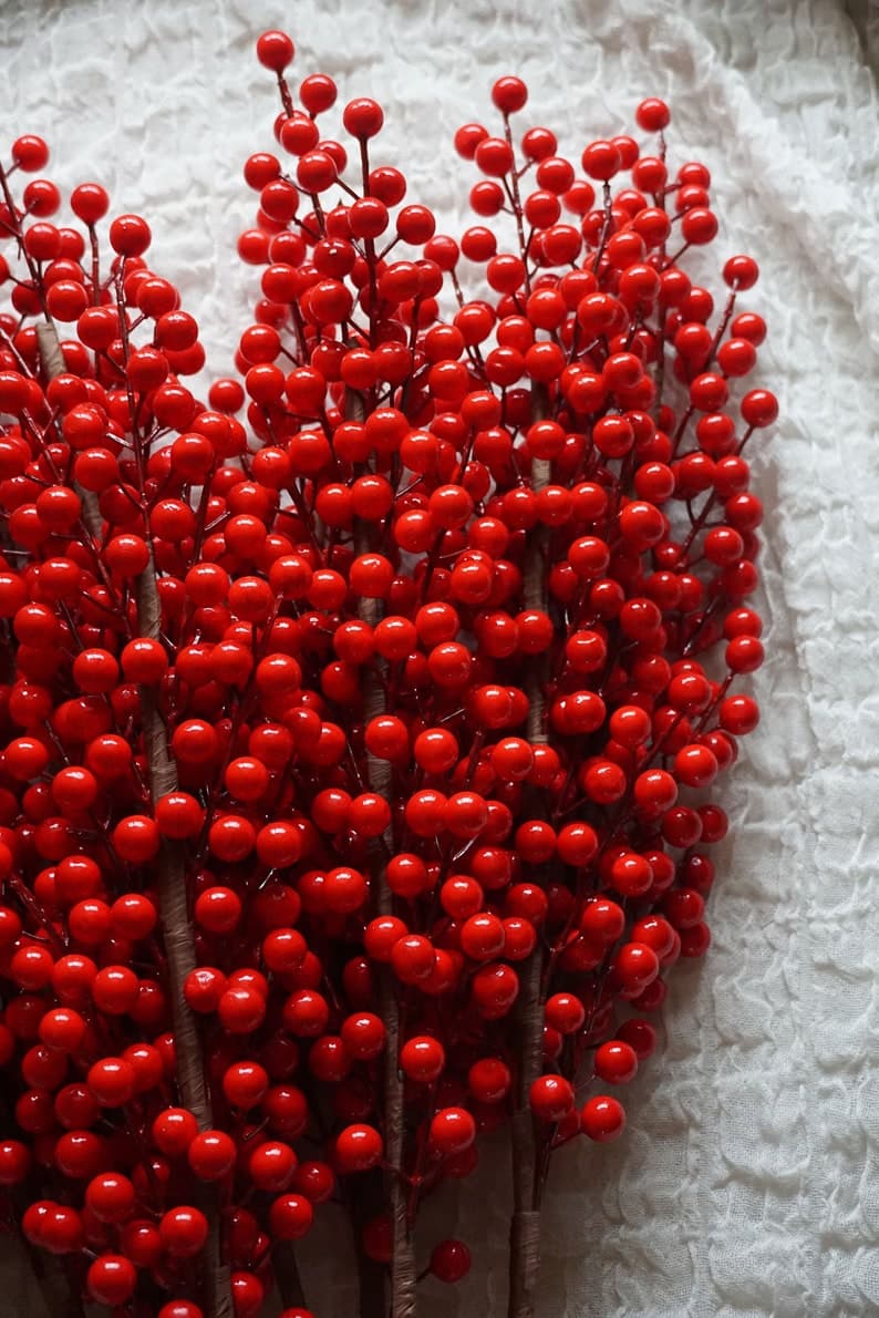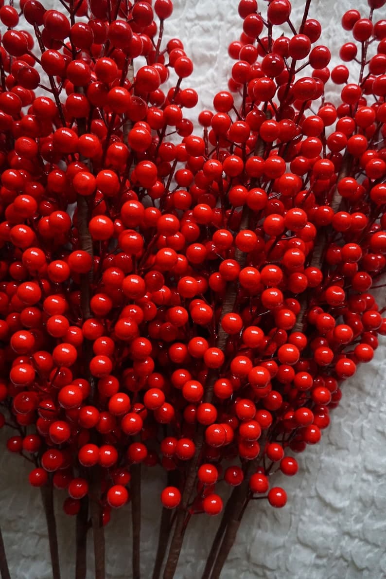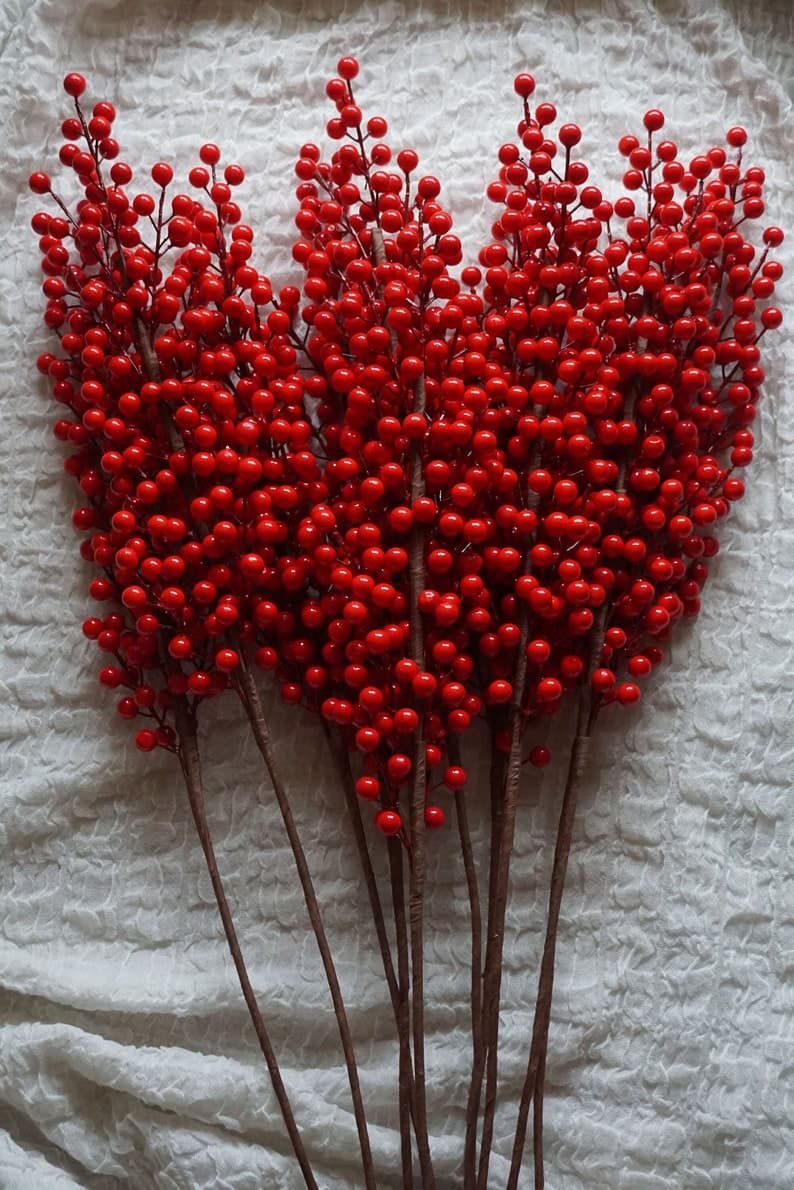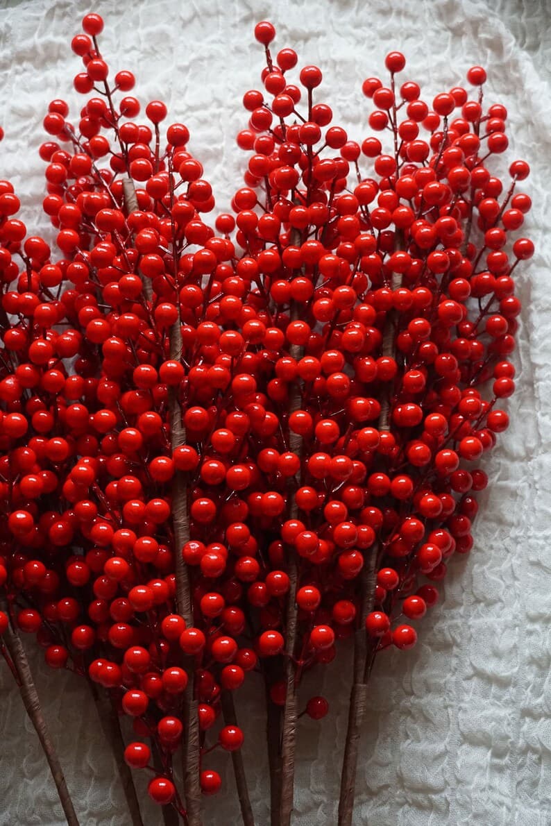 Christmas Red Berries Stalk With Twelve Branches-christmas Berries-christmas Faux Red Berries-winter Berries - Etsy Spain